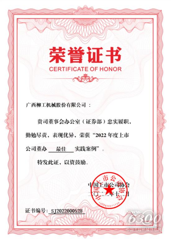 公司董事会秘书黄华琳荣获“2022年上市公司董事会秘书履职评价5”。2022年1-12月,广西柳工机械股份无限公司荣获“2022年度上市公司董办最佳实践案例”,正在2022年10月17日,6吨282台),从手艺、市场、整车配套、